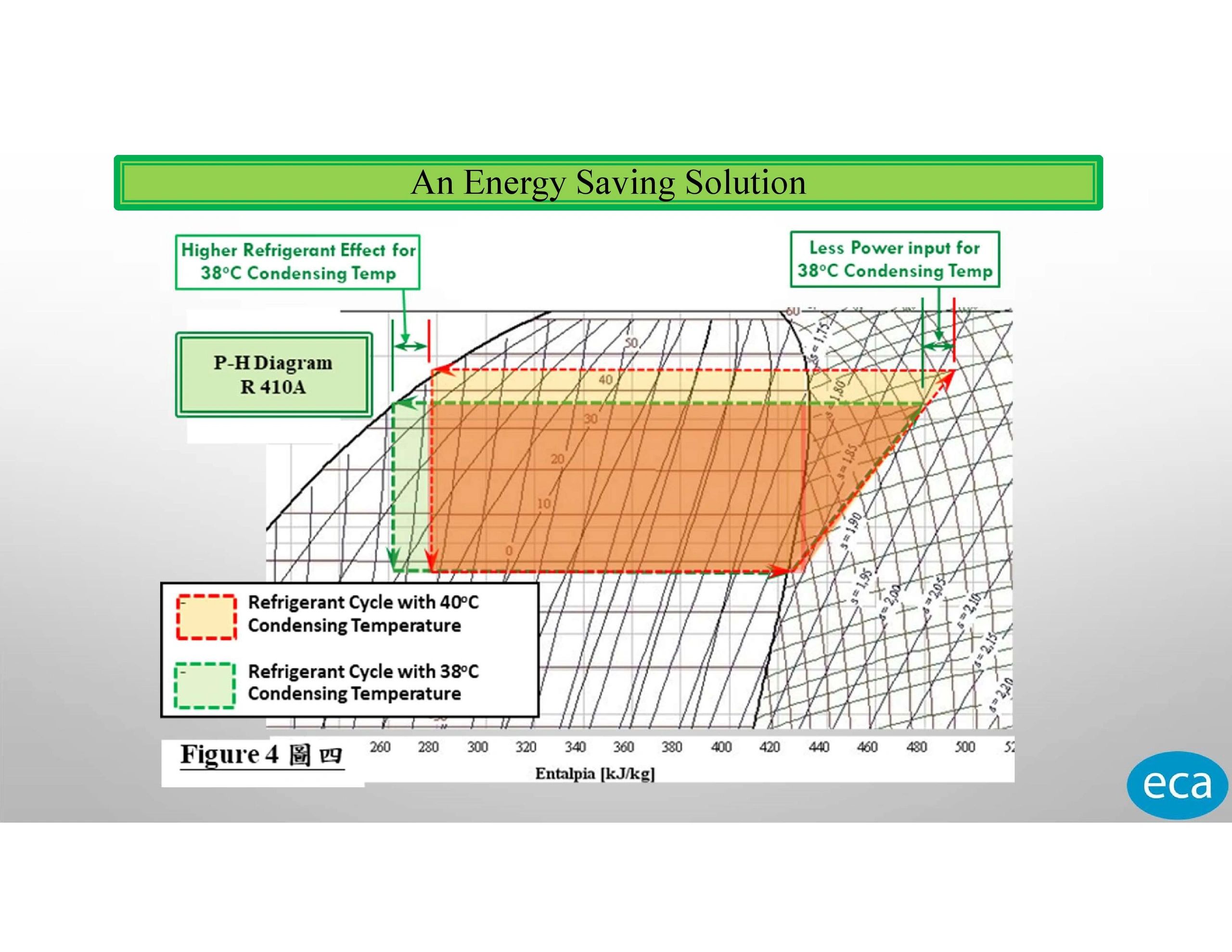 Patented Plate-Tube Liquid Film Evaporative Technology (Figure 2 & 5) is used to replace the traditional tube type evaporative condenser. It is the highest efficient condenser with lower condensing temperature (38℃) as compared to air cooled (48℃) and water cooled (40℃). The heat transfer rate of the condenser can be greatly improved and prolong the working life of the equipment. Besides it minimizes the presence of scale and sludge on surface of the condenser.